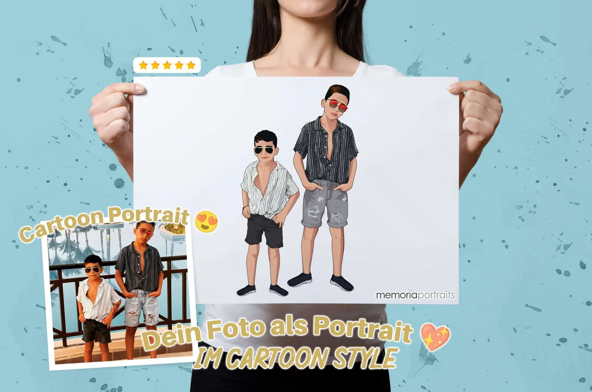 Produkt konfigurieren Dieses Produkt weist mehrere Varianten auf. Die Optionen können auf der Produktseite gewählt werden89,90 €Bewertet mit 5 von 5Jedes Portrait ist einzigartig und wird mit viel Liebe zum Detail digital produziert. ✔ Ganzkörper Portrait ✔ Handgezeichnete Illustration von unseren Künstlern ✔ Einzelfoto oder Gruppenfoto (Auch aus mehreren Fotos)
